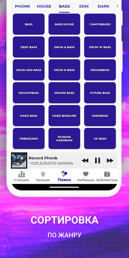 🔊 Музыкальные станции: исследуй музыкальные станции, посвященные музыке фонк, хип-хопу и многим другим жанрам.
