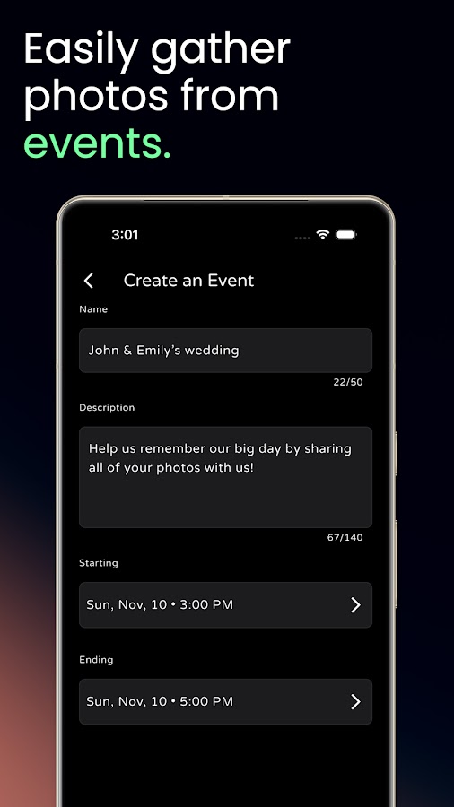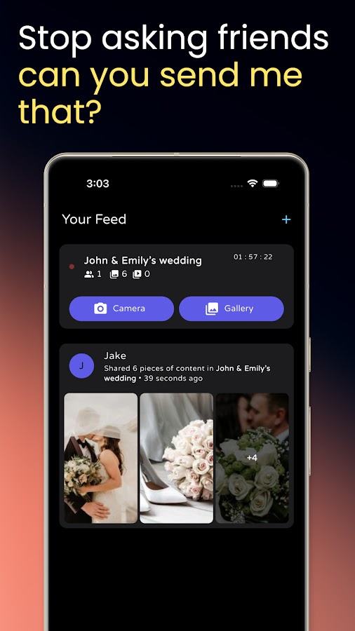 — Максимизируйте воспоминания: посмотрите, как другие пережили ваш особенный день, через их глаза и линзы. Общая галерея для всех фотографий обогащает коллективную память о ваших событиях.