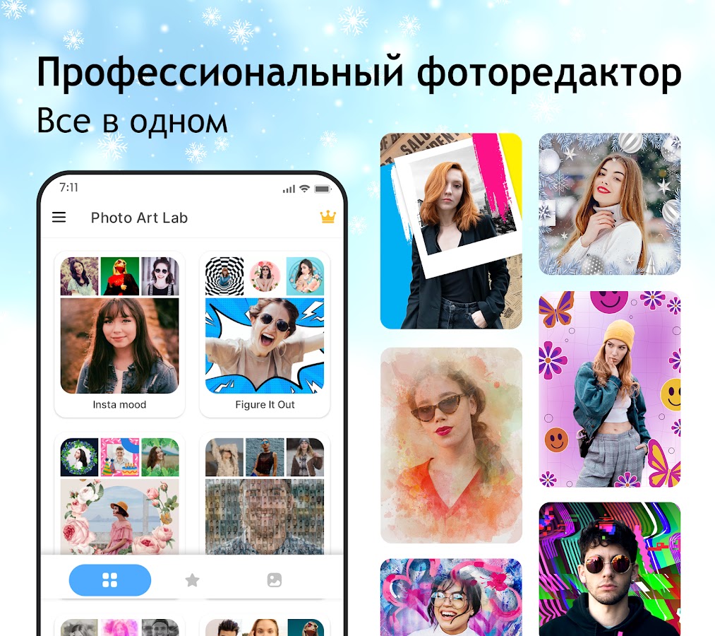 Восвободите творческий потенциал с помощью передовых инструментов редактирования Раскройте потенциал инструментов профессионального уровня на вашем смартфоне с помощью приложения «фотолаб бесплатно — фоторедактор». Это приложение использует свои возможности, основанные на ИИ, чтобы позволить вам улучшить качество снимков в одно касание — легкая ретушь, настройка параметров и персонализированный дизайн. Независимо от того, новичок вы или продвинутый редактор, редактирование еще никогда не было таким простым.