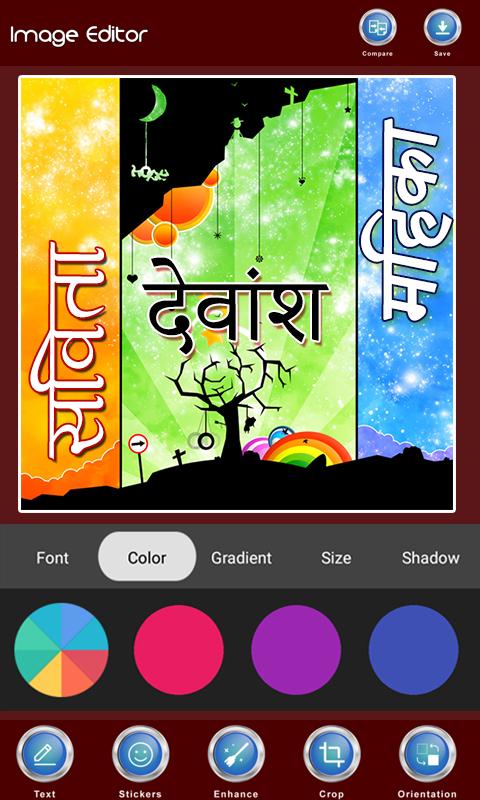 — Хочет, чтобы получить творческий край в ваших фотографиях дисплея? Теперь создавать или генерировать котировки на фотографиях с шрифтом и стилями и любой фантазией текстом, например, такими как приветствие Вашей любимой случаю, фестивали. Теперь написать текст на фотографии с различными цветами вашего выбора и различных стильных шрифтов. Если вы любите, чтобы добавить текст на изображениях или кавычки или мысли, Фото Пе НААМ Likhe — फोटो पे नाम लिखे является лучшим приложением, чтобы добавить хинди текст, произведения искусства и наклейки на фотографиях.