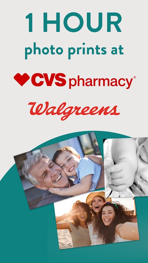 Закажите фотопечать в аптеках CVS и Walgreens прямо со своего телефона. Оплатите при получении в ближайшем фотоцентре CVS или Walgreens. Также доступна доставка фотопечати и подарков на дом.