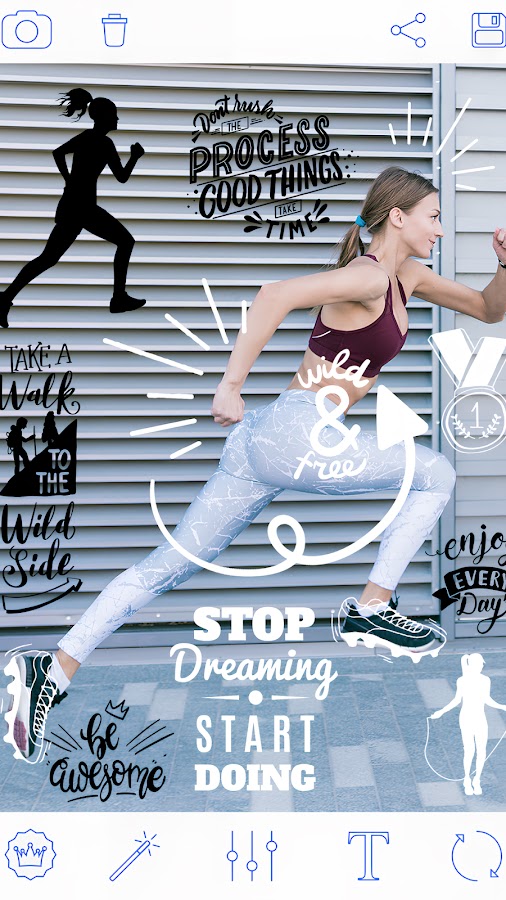 ⇒ Штампы и текст: персонализируйте свои фотографии с помощью эффектов, штампов и наложений текста в этом приложении для редактирования фотографий.