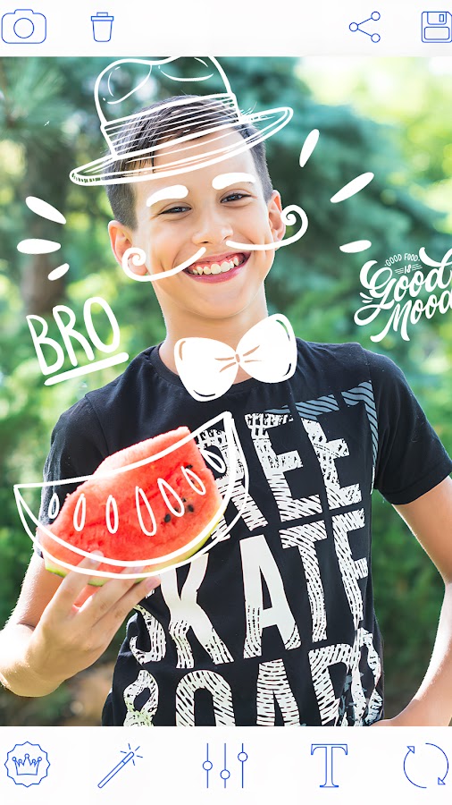 ⇒ Бесконечное творчество: создавайте бесчисленное множество разных фотографий с помощью очаровательных наклеек-каракулей, применяя эффекты и фотофильтры.