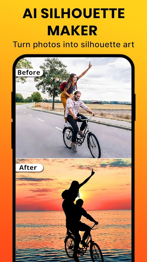 Photo to Silhouette Maker — это приложение для создания силуэтов на основе искусственного интеллекта, которое поможет вам создавать четкие, художественные силуэты без ручного редактирования. Просто выберите фотографию, и приложение интеллектуально определит объект, обработает фон и преобразует ваше изображение в красивый силуэт — идеально подходит для плакатов, фотографий профиля, минималистичного искусства и социальных сетей.