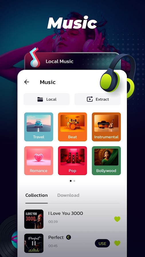 Средство создания слайд-шоу предлагает широкий выбор онлайн-музыки разных музыкальных стилей, таких как поп, Болливуд, любовь и т. д.. Вы можете также загрузить собственную музыку, чтобы создать идеальный саундтрек для вашего слайд-шоу. Кроме того, можно выбрать рекомендуемую музыку, например песни ко дню рождения или рождественские гимны, чтобы добавить праздничную атмосферу к вашим фотографиям. Поддерживается возможность редактирования музыки, позволяющая выбирать лучшие или предпочтительные музыкальные клипы.