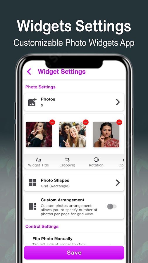Вращение: пользователь может поворачивать фото виджеты ios на главном экране Android на 90, 180 и 270 градусов.