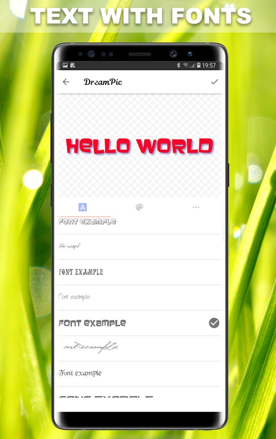 Sie können jeder Fotomontage Text hinzufügen, indem Sie aus einer Liste unendlicher Schriftarten auswählen.