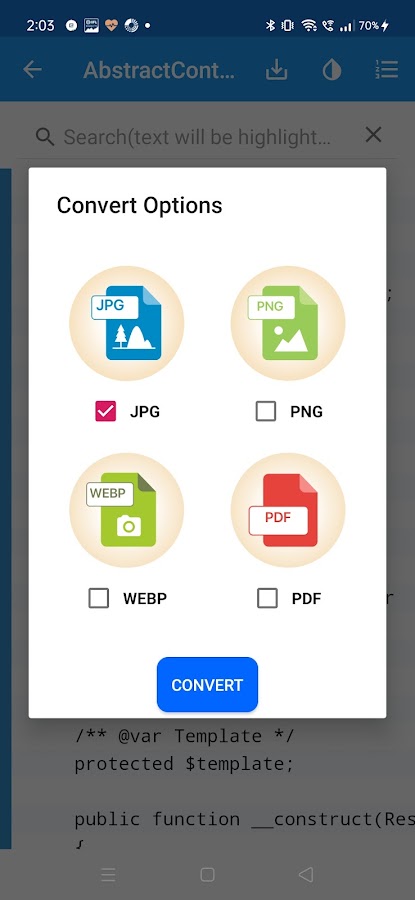 Легко конвертируйте или просматривайте файлы PHP на мобильных устройствах и конвертируйте в формат изображения/PDF.