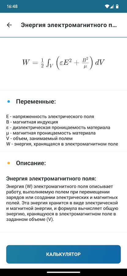 «Физика — Формулы и Калькуляторы» поможет Вам: