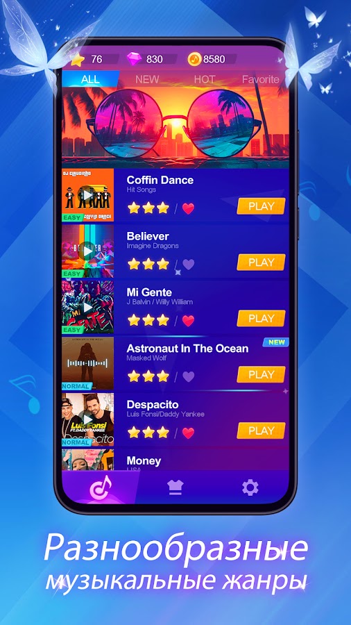 • Открывайте новые песни, проходя уровни и собирая золото.