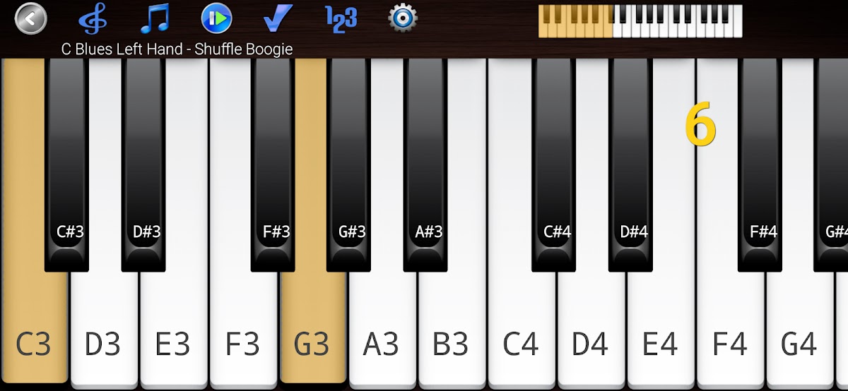 Точно знайте, какие ноты играть, выбрав тональность и следуя выделенным рекомендованным нотам.