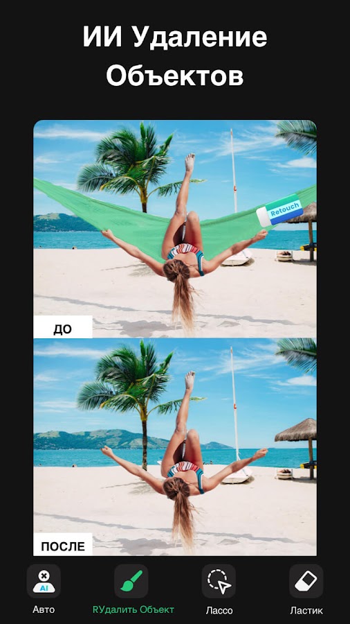 Одно касание удалить нежелательный объект, логотип, человек, текст, пятно, наклейка, водяной знак исчезнет самым естественным образом… Удалить Объекты с Фото — Pic Retouch будет вашим лучшим выбором. Попробуйте волшебный автоматический режим, чтобы выбрать и удалить нежелательный объект за считанные секунды с обнаружением ИИ.