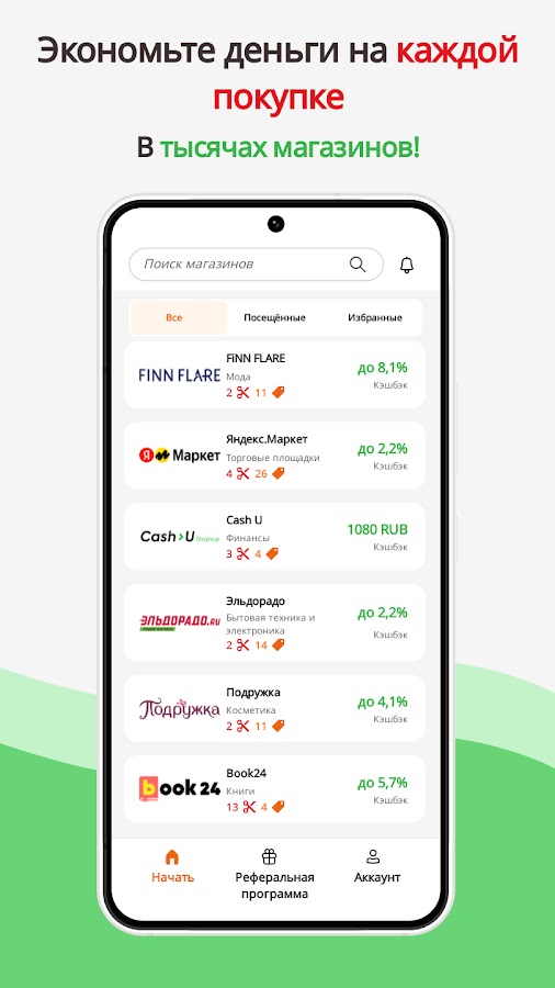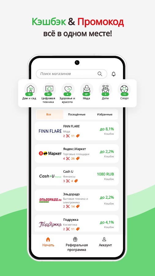 Каждый день в нашем приложении появляются специальные предложения, дополнительные бонусы, а также доступные только у нас скидки на покупки в самых популярных магазинах.