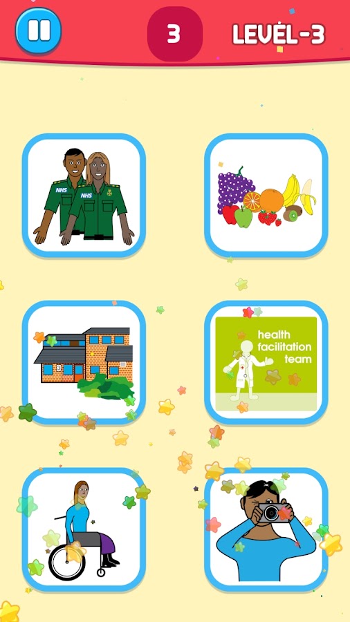 Цель проста, но сложна — сопоставить соответствующие половинки символов до того, как истечет время. По мере прохождения игры уровни сложности возрастают, представляя постоянно растущий массив замысловатых символов для проверки ваших когнитивных способностей. Символы разнообразны от «легких до самых простых», взятых с веб-сайта https://www.learningdisabilityservice-leeds.nhs.uk/easy-on-the-i/image-bank/, что обеспечивает визуально стимулирующий опыт.