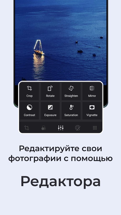 РАСШИРЕННЫЙ ФОТОРЕДАКТОР: редактируйте фото и делайте их лучше быстро и легко. Используйте интуитивно понятный и мощный редактор фотографий, применяя фильтры, настройки освещения, обрезку и изменение размера.