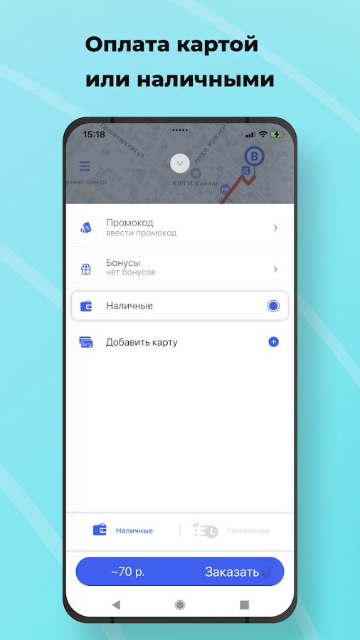 Оплачивайте поездки картой или наличными — вам удобно.