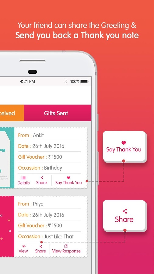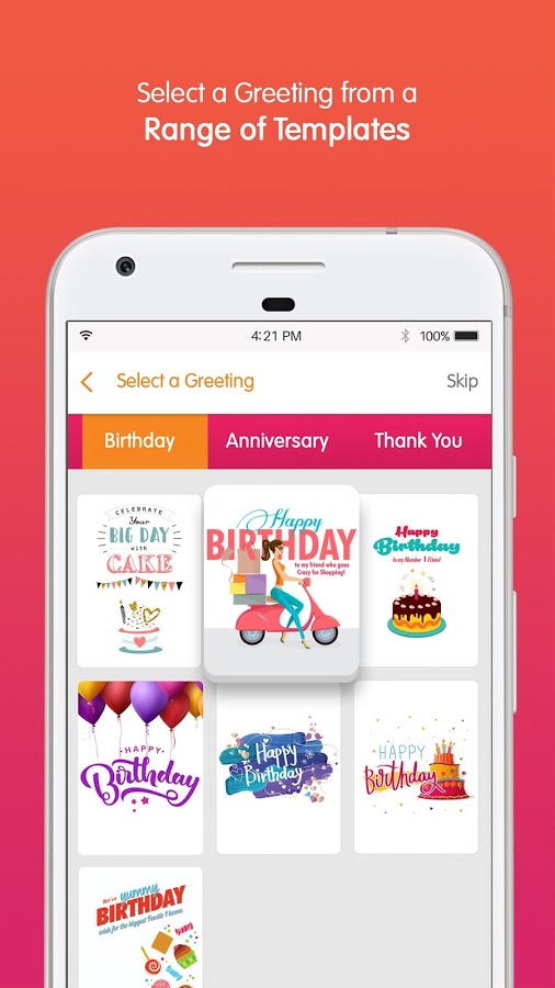 Широкий ассортимент подарочных ваучеров от популярных брендов доступны для покупки и подарков. Кроме того, добавить личный контакт с вашими подарками, настраивая Поздравительные шаблоны для различных случаев, или просто создать приветствие по своему усмотрению и отправить его вместе с подарком ваучером. Ваш друг может поделиться своим вдумчивым жестом на платформах социальных медиа.