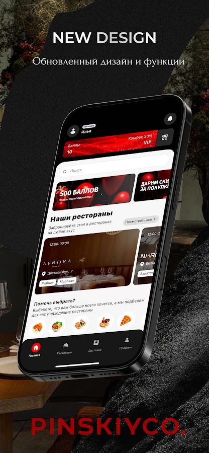 Наше приложение позволит легко и просто заказать вашу любимую еду из одного или сразу нескольких ресторанов, входящих в состав группы холдинга Pinskiy&Co.