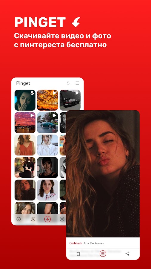 Если вам нужно сохранить из пинтерест фото или видео на своём устройстве, то приложение Pinget – это то, что вам нужно! Скачивайте приложение Pinget прямо сейчас и получайте удовольствие от работы с ним! Красивое, быстрое, удобное и без навязчивой рекламы! Вам больше не нужно искать как скачать из пинтерест. Скачать видео с пинтерест ещё никогда не было так просто.
