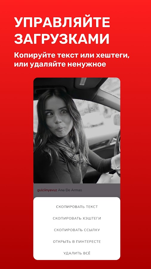 В приложении реализованы все средства для удобного просмотра загруженных фото и видео. Помимо медиафайлов также сохраняется описание пина и его автор. Поэтому вы можете скачать видео из пинтереста или скачать фото с пинтереста и получить доступ к контенту даже когда нет интернета.