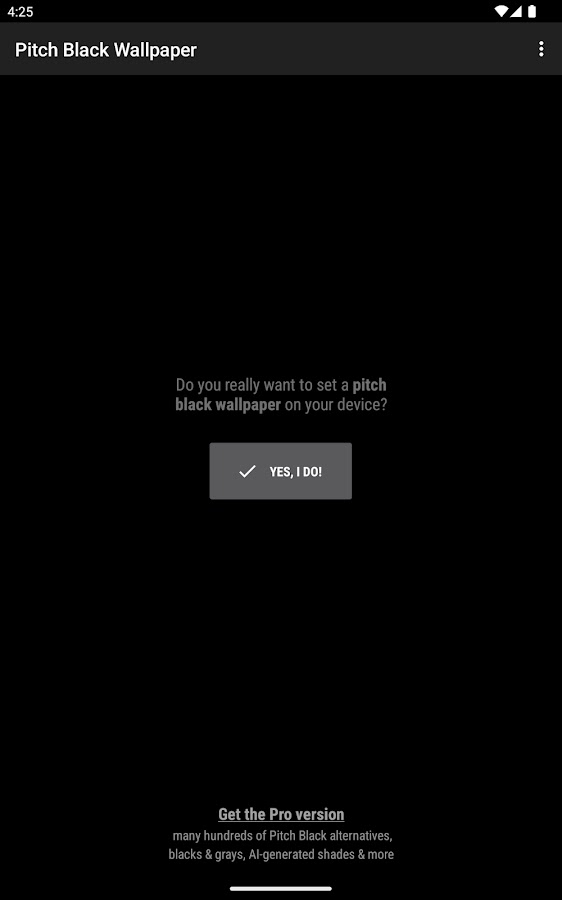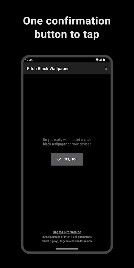 Приложение чрезвычайно просто в использовании: просто нажмите кнопку подтверждения и получите мгновенные результаты. Поздравляем! Это черные обои!