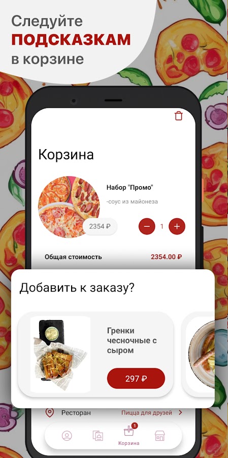 Как сделать заказ в приложении Пицца для друзей: