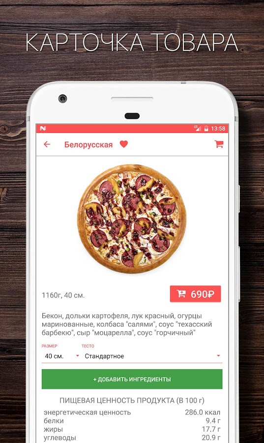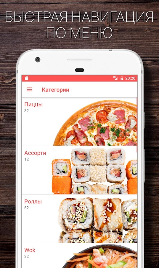 Установите приложение и заказывайте пиццу, суши, вок в 2 клика.