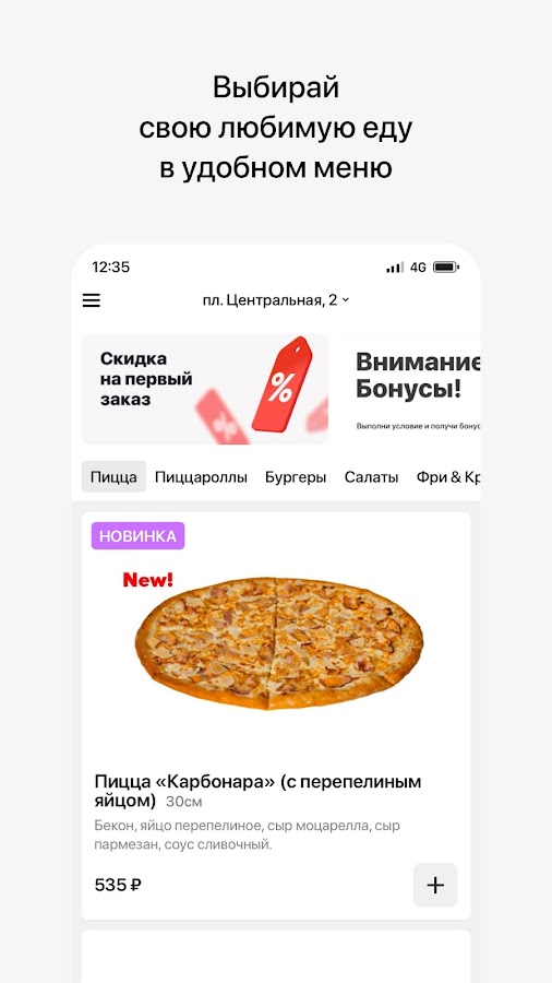 «ПИЦЦБУРГ» — приложение по доставке вкусной еды в Вашем городе!