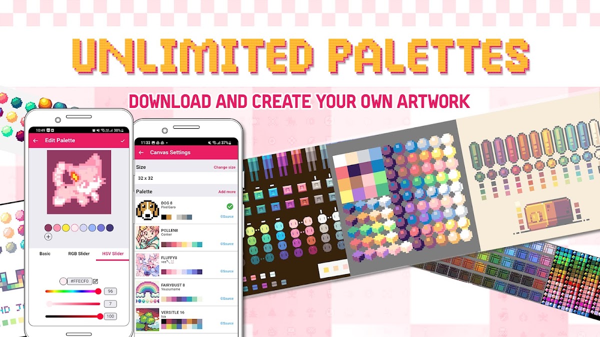 Хотите нарисовать простой пиксельарт? Заинтересованы в симпатичном пиксель-арте, кавай-арте или даже в трендах цифрового искусства? Это приложение идеально подходит для вас ♡ Стать пиксельным художником стало еще проще с помощью Pixel Maker: Push for Pixelart! Ищите различные идеи, рисуйте, а затем делитесь ими с сообществом Pixel Maker.
