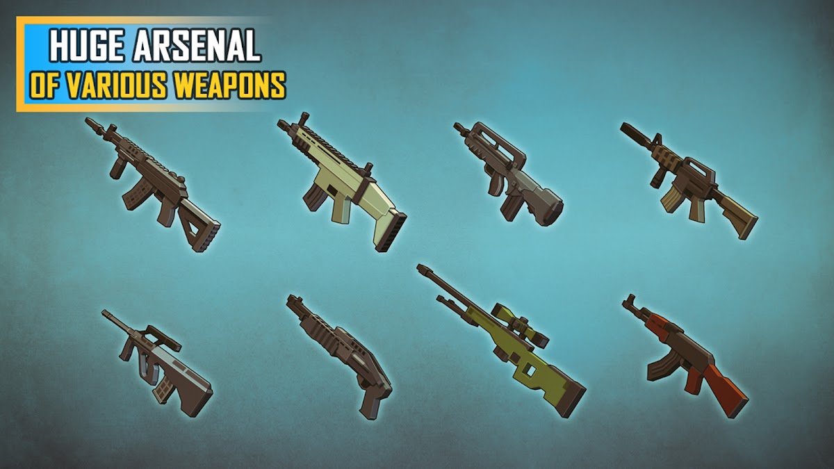 — Огромный арсенал пиксельного оружия: РПГ, огнеметы, автоматы, пулеметы, ружья и винтовки ждут вас!