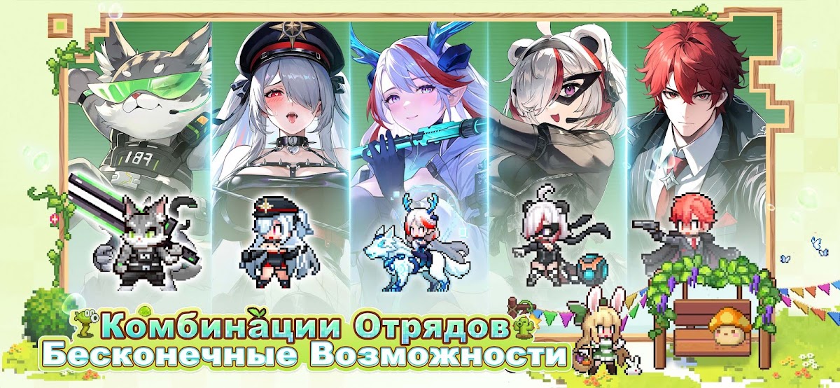 В игре в целом принят ретро-пиксельный стиль, который является уникальным в современных играх, и дает вам ощущения возвращения в детство за секунду! Помимо большинства пиксельных графических элементов, каждый персонаж имеет изящный рисунок в 2-D стиле. В сюжетном диалоге рисунки будут представлены в виде Live2D, сочетание изысканной графики и пиксельного стиля, больше визуального воздействия и привлекательности.
