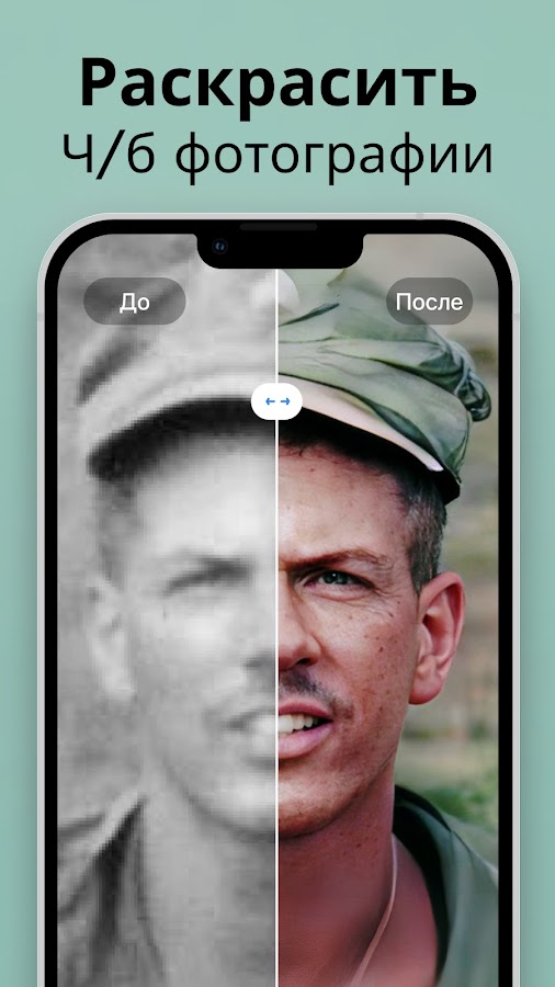 Раскрасьте свои ностальгические, старые, черно-белые семейные фото и сделайте их новыми. Придайте цвет любому фото одним касанием.