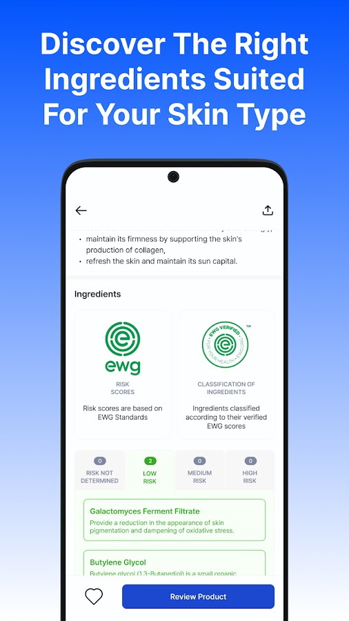 ④ Просматривайте подробную информацию о продуктах и находите активные ингредиенты, подходящие вашему типу кожи.