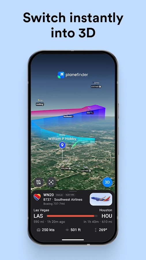 * 3D-просмотр глобуса. Следите за полетами в 3D и исследуйте красоту моделей воздушного движения в реальном времени как для реальных, так и для исторических рейсов.