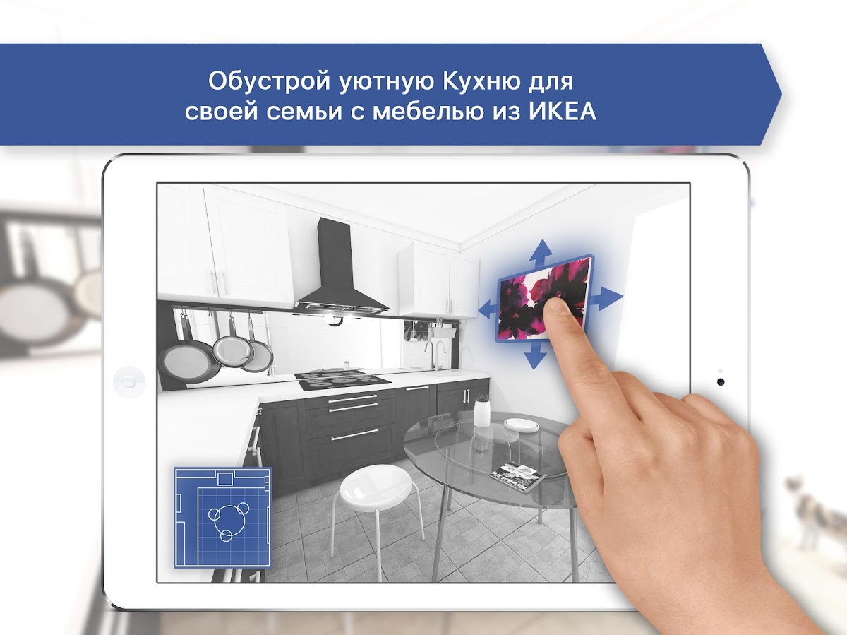 — Перемещение мебели, задание отделки пола и стен, добавление предметов декора простым прикосновением пальца.