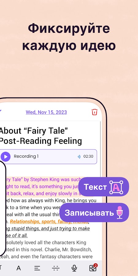 — Нажимайте на экран, чтобы редактировать и удалять заметки