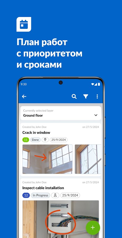 С помощью нашего приложения для строительной площадки, новые задания и строительные дефекты можно добавлять на онлайн-чертежи или BIM-модели в виде задач. Все участники проекта, имеющие соответствующие права, могут размещать их с точностью до миллиметра, дополняя фотографиями, текстовыми, голосовыми сообщениями и документами. Приложение позволяет легко и четко обмениваться информацией, избегая ошибок и недоразумений.