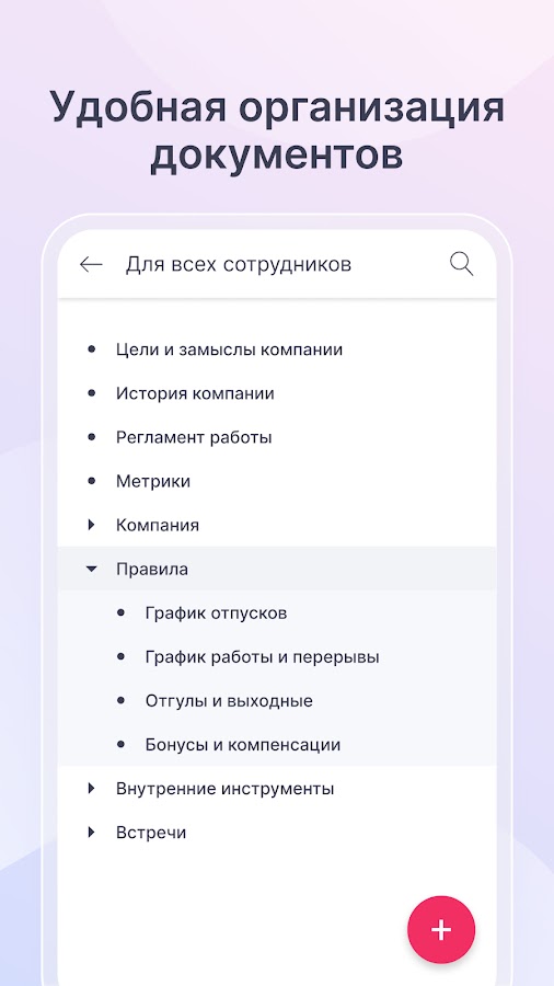 Сервис упрощает и систематизирует управление и организацию работы бизнеса за счет ряда эффективных инструментов: структуры компании и метрик для каждой должности, работы с задачами, автоматизации обучения, финансового планирования и управленческого учета, автоматизации контроля качества, безопасного хранения паролей, учета и контроля за имуществом.