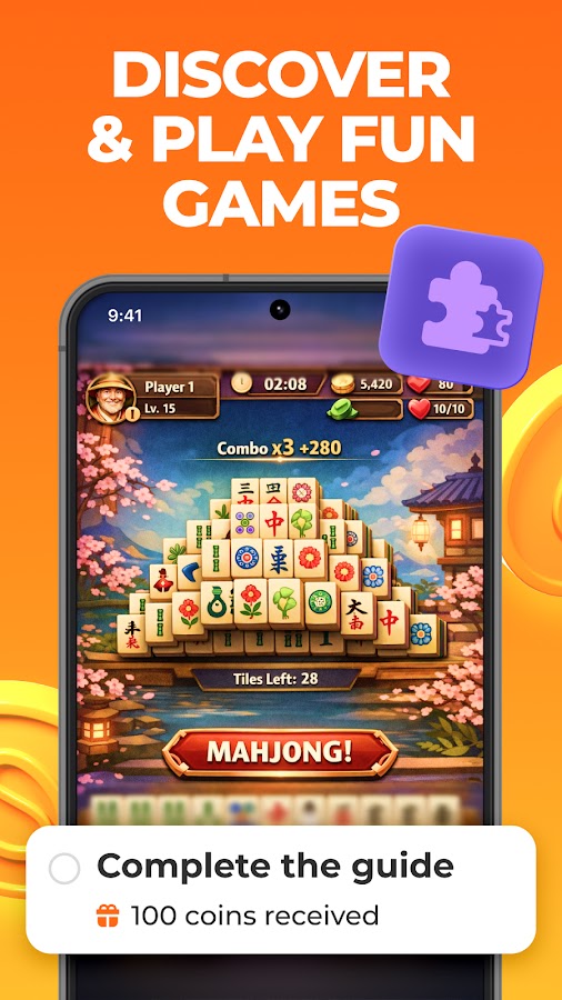 Играйте в простые игры, которые подарят вам чувство вознаграждения за потраченное время. Зарабатывайте монеты во время игры и обменивайте их на широкий выбор популярных подарочных карт, цифровых ваучеров и денежных вознаграждений! Вы можете отплатить себе за своё время каждой заработанной наградой. Получать прибыль от игр ещё никогда не было так просто.