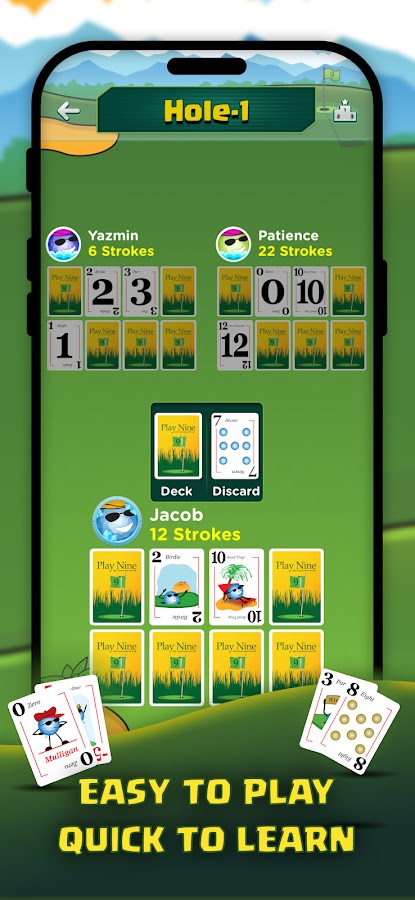 Самая продаваемая игра в гольф на рынке, Play Nine: The Card Game of Golf теперь доступна на мобильных устройствах! Загрузите Play Nine, бесплатную игру в гольф, и бросьте вызов своим друзьям и семье в наших многопользовательских режимах игры (игра с друзьями и многопользовательская игра)