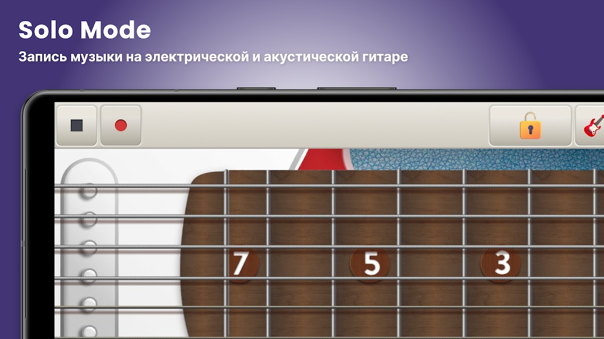 В «Solo Mode» Вы можете играть без помощи нашего самоучитель игры на гитаре и запись музыки и слов. Записанные музыкальные файлы могут быть разделены с семьей, друзьями и любимыми раз.