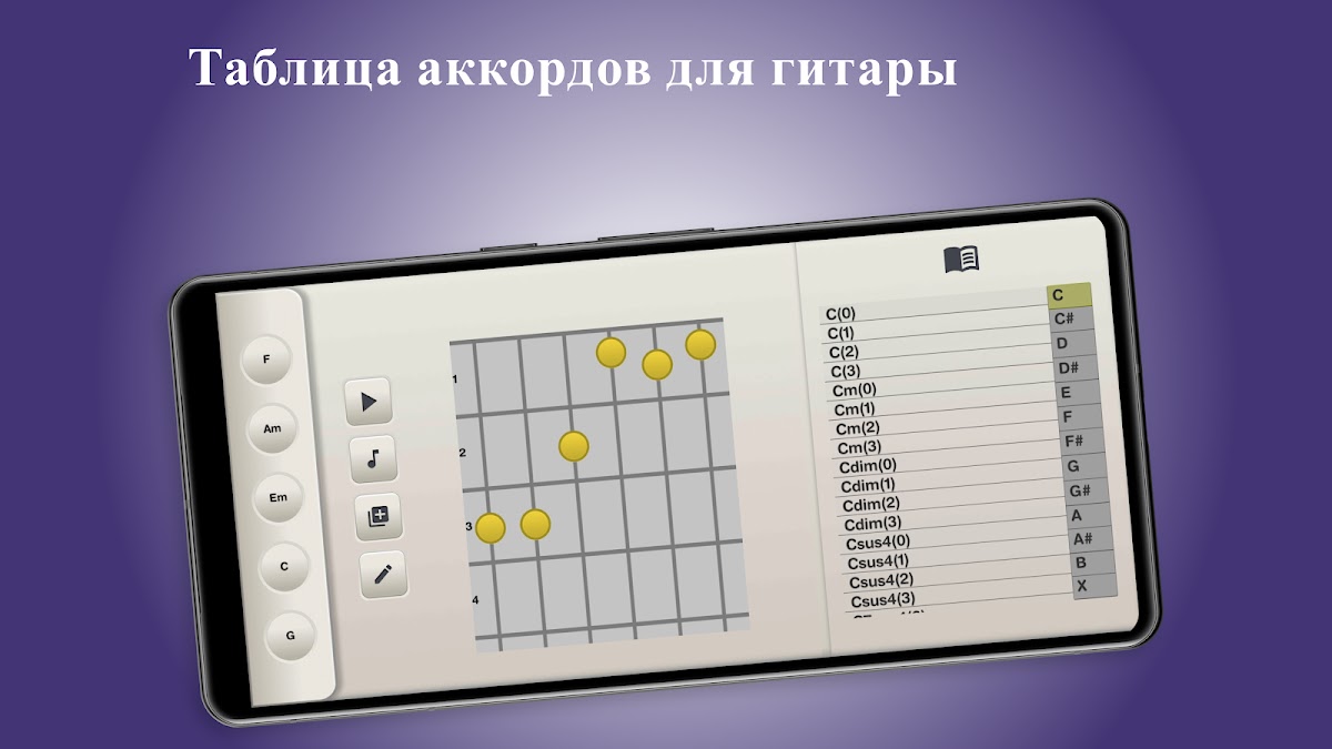 — «Chords Mode» с таблица аккордов на гитаре чтобы выбрать из