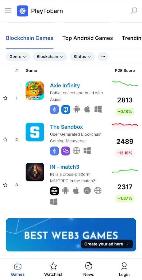 Информация о PlayToEarn — Crypto Games List