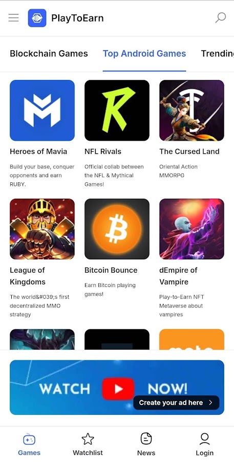 Скачайте приложение PlayToEarn — Crypto Games List для Android бесплатно - последняя версия (2.0) уже доступна для установки на ваш телефон или планшет.
