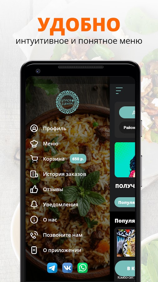 Приложение Плов Центр — это удобный способ заказа еды домой или в офис. В меню представлены три вида плова: ташкентский, самаркандский и лагман, шашлык, блюда на мангале.