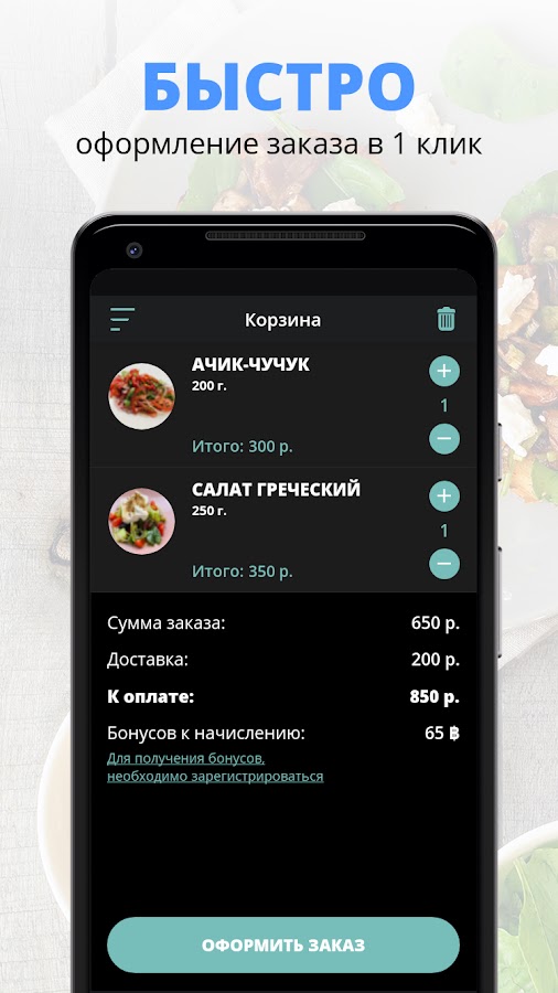 Скачивайте наше приложение, оформляйте заказ и наслаждайтесь любимой едой, где бы Вы ни были! Приятного аппетита!