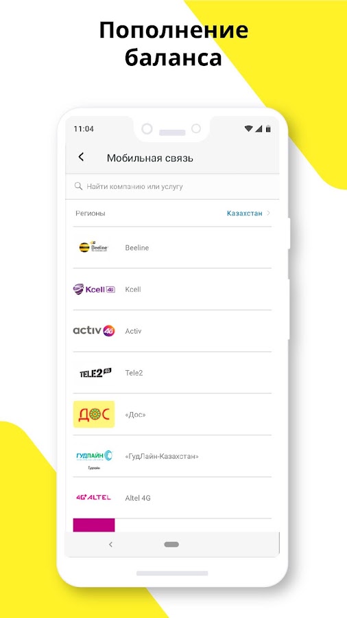 В приложении собраны популярные услуги крупных казахстанских компаний, а также услуги локальных провайдеров из отдельных городов Казахстана.