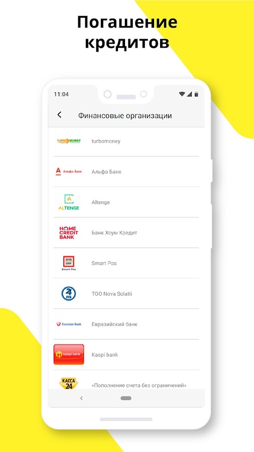 (Банк Хоум Кредит, Халык банк (Halyk bank kz), Каспи kz (Kaspi Gold), ForteBank, АТФ банк, Alfa bank kz и др)