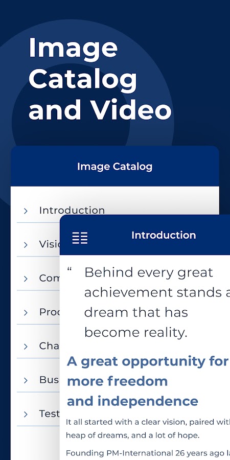 Каталог изображений — наша имиджевая брошюра здесь! Нет больше бумажных каталогов и компьютеров с видео. Каталог доступен в автономном режиме. Подарите PM-International любому человеку в любое время!
