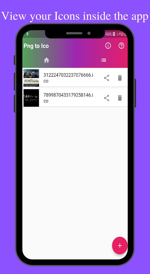 => Вы также можете поделиться им с другими телефонами или другими приложениями, потому что у него есть ключевая функция обмена значком (ico).